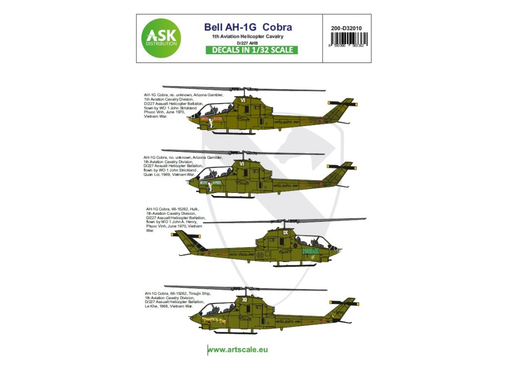 1/32 Bell AH-1G Cobra 1th Aviation Helicopter Cavalry D/227 AHB. Obtisky pro plastikovou stavebnici. Obsahuje 4 markingy.