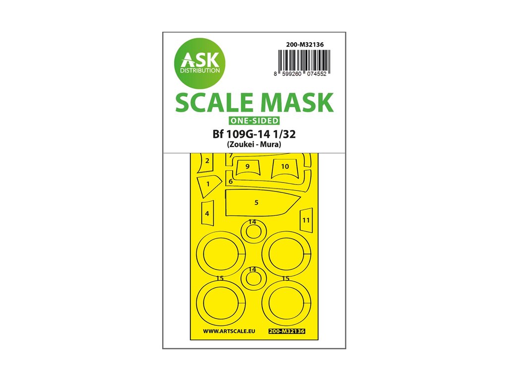 1/32 Messerschmitt Bf 109G-14 jednostranná fit express maska pro stavebnici Kotare. Katalogové číslo 200-M32136
