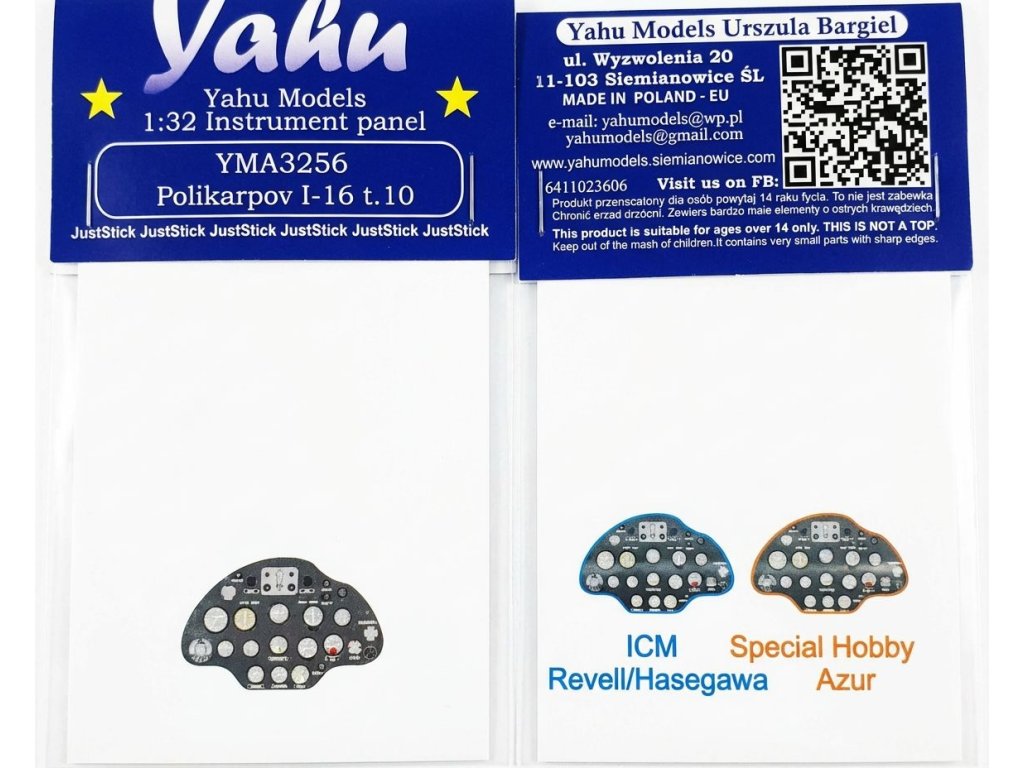 Fotolepená přístrojová deska od Yahu Models je doplněk určený ke zlepšení detailu kokpitu stavebnic v měřítku 1:32 od výrobců Cyber Hobby a Dragon. Jedná se o barevně vytištěnou součástku s technologií JustStick, což znamená, že má na zadní straně samolepicí vrstvu a stačí ji vyjmout z nosiče a nalepit na příslušné místo v modelu – není nutné používat lepidlo ani ručně malovat jednotlivé přístroje, ciferníky a popisky. Deska je navržena tak, aby přesně odpovídala tvaru a rozložení přístrojů v kokpitu originálního letounu a zároveň byla kompatibilní s plastikovými díly zmíněných stavebnic.