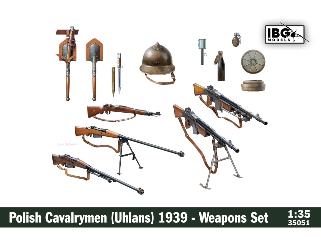 IBG 1/35 Polish Cavalrymen (Uhlans) 1939 – Weapons Set je doplňkový set zbraní určený pro figurky polských jezdců – ulanů z období počátku druhé světové války. Set umožňuje detailně doplnit výzbroj jednotek polské kavalerie z roku 1939 a zvýšit historickou věrnost figurkových scén a dioramat.