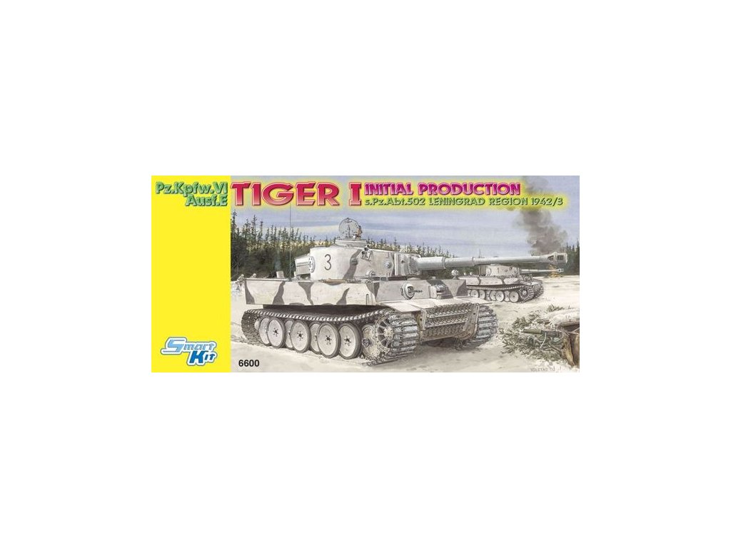 Dragon 1/35 Pz.Kpfw.IV Ausf.E TIGER I Initial Production, s.Pz.Abt.502, Leningrad Region 1942/1943 je plastikový model německého těžkého tanku z období 2. světové války určený ke slepení. Stavebnice zachycuje raný výrobní typ Tiger I v konfiguraci, v jaké byl nasazen u těžkého tankového praporu 502 v oblasti Leningradu v letech 1942–1943. Měřítko 1:35 umožňuje detailní zpracování podvozku, věže i výzbroje a je standardem pro vojenské modely pozemní techniky. Balení neobsahuje barvy ani lepidla potřebné k sestavení.