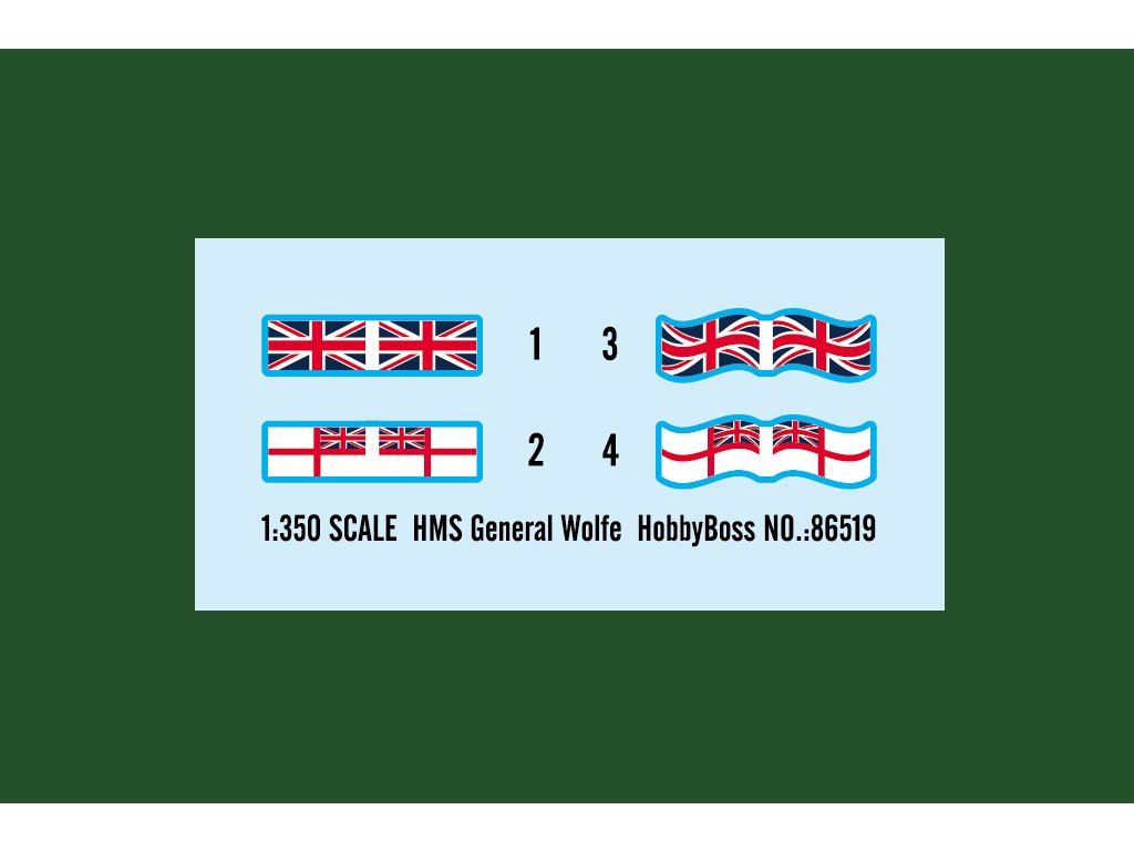 Hobby Boss 86519 1/350 HMS General Wolfe je plastikový model britského monitoru třídy Lord Clive z období 1. světové války určený ke slepení. HMS General Wolfe byl postaven v roce 1915 pro pobřežní bombardování a od roku 1918 nesl jedinečnou 18palcovou (457mm) hlavní zbraň – největší kalibr použitý Royal Navy během války. Monitor sloužil v rámci Dover Patrol a účastnil se operací u belgického pobřeží včetně náletu na Zeebrugge. Měřítko 1:350 umožňuje detailní zpracování tohoto neobvyklého typu válečné lodi. Balení neobsahuje barvy ani lepidla potřebné k sestavení.