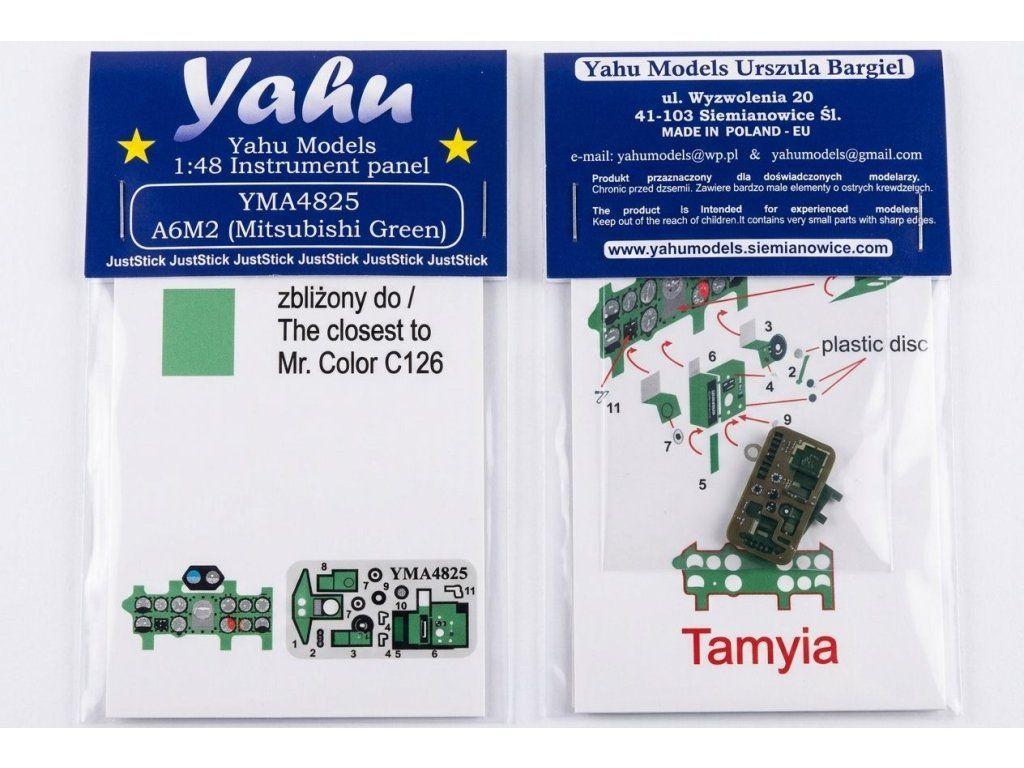 Yahu Model YMA4825 je sada kolorovaných leptaných přístrojových desek v měřítku 1:48 určená pro stavebnici Tamiya Mitsubishi A6M2 Type 21 Zero. Díly jsou předbarveny v autentickém odstínu Mitsubishi Green a jsou připraveny k přímé montáži bez nutnosti dalšího lakování (technologie JustStick). Sada je navržena přímo pro kity Tamiya.