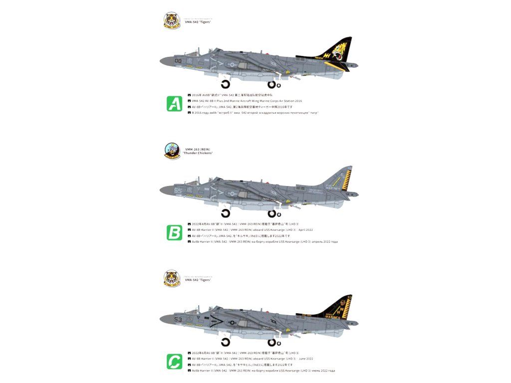 Obtisky od renomovaného výrobce Cartograf pro tři varianty letounů US Marine Corps (USMC).