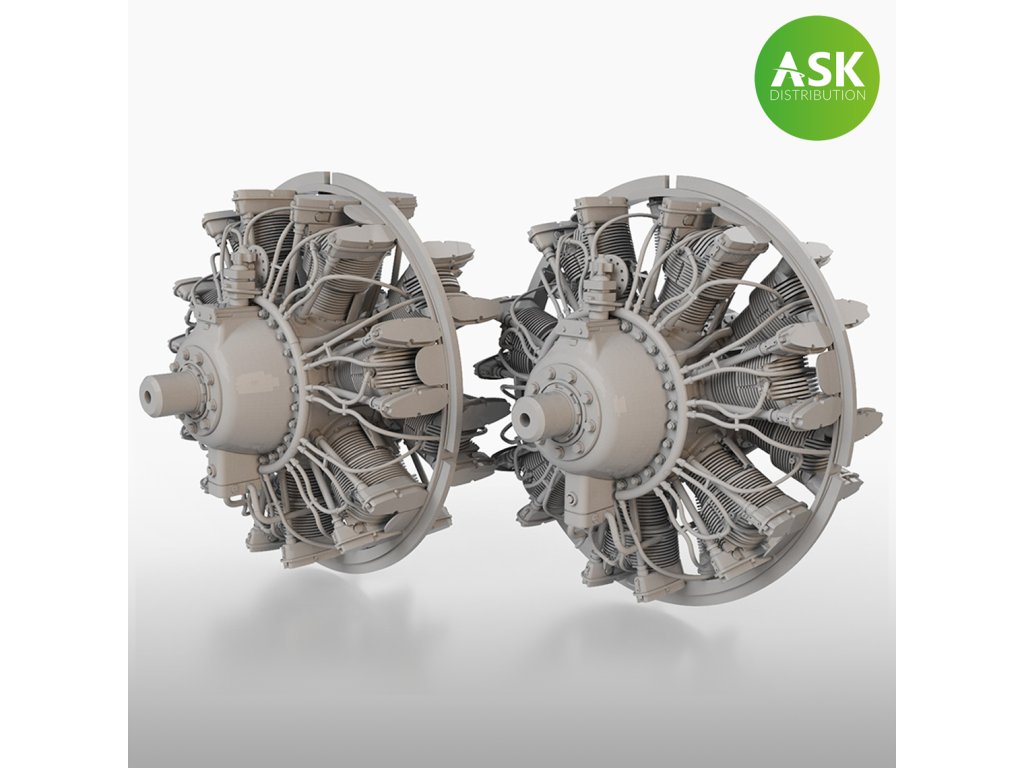Společnost ASK Distribution s.r.o. s hrdostí představuje vlajkovou loď naší prémiové řady 3D tištěných doplňků. Tato nová sada motorů (kat. č. 200-A48084), navržená speciálně pro stavebnici B-25 Mitchell v měřítku 1/48 od firmy HK Models, představuje vrchol současné 3D konstrukce a technologie tisku s vysokým rozlišením.