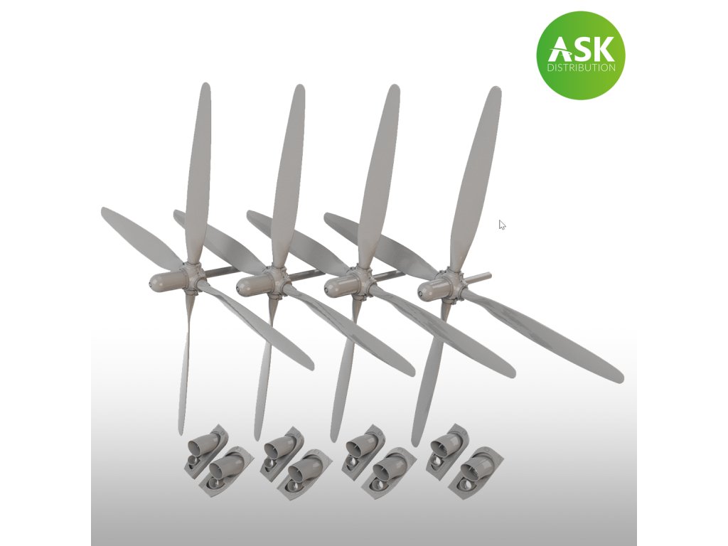 1/48 B-29 Superfortress - Sada detailů vrtule a výfuků, 4 ks pro stavebnici Revell / Monogram, ASK č. 200-A48069