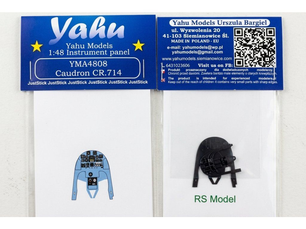 Yahu Models 1/48 Caudron C.714 Cyclone je fotoleptem vyrobená přístrojová deska kokpitu v barevném provedení, určená pro stavebnici RS Models Caudron C.714 v měřítku 1:48. Díky technologii JustStick je připravena k přímému osazení bez nutnosti dalších úprav. Doplněk zvyšuje úroveň detailu kokpitu oproti plastovému originálu ze stavebnice.