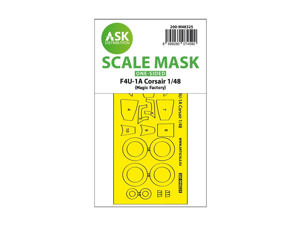 Art Scale Kit Distribution (ASK) vyrábí předřezané a očíslované maskovací díly pro plastikové modely. Masky jsou určeny především k maskování kabin a kol, ale usnadňují i maskování dalších částí modelu. Každá sada je doporučena pro konkrétní model v příslušném měřítku, což zajišťuje maximální přesnost a snadné použití.