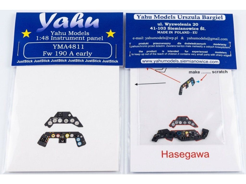 Eduard 1/48 Fw 190A early Photoetched instrument panels je sada předem nabarvených leptaných přístrojových desek určená pro stavebnice Focke-Wulfu Fw 190A v raných variantách od firem Hasegawa a Tamiya v měřítku 1:48. Díky technologii JustStick jsou díly opatřeny samolepicí vrstvou a nevyžadují lepidlo — stačí je přesně umístit a přitlačit. Sada je barevná a připravená k přímé montáži.