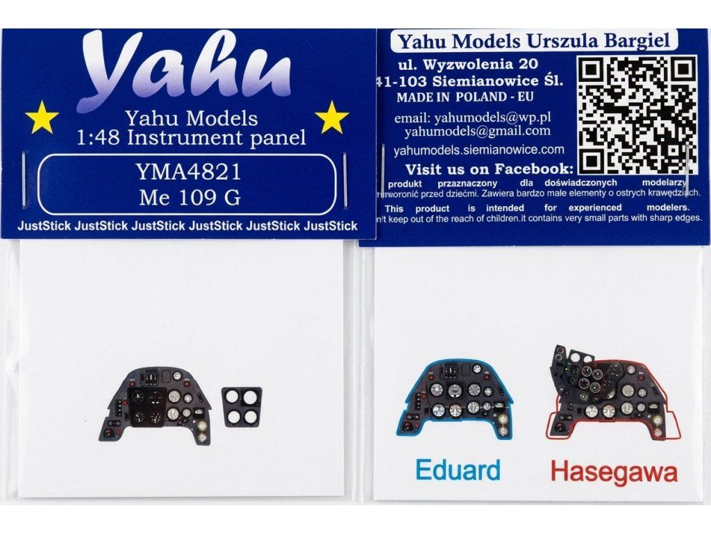 Yahu Model YMA4821 1/48 Me 109G-6 je sada barevných leptaných přístrojových desek určená pro stavebnice Messerschmittu Bf 109G-6 od firmy Eduard v měřítku 1:48. Díly jsou předem natištěny v barvě a připraveny k přímé montáži technologií JustStick — bez nutnosti barvení. Sada je navržena jako přímá náhrada originálních plastových dílů z kitu Eduard.