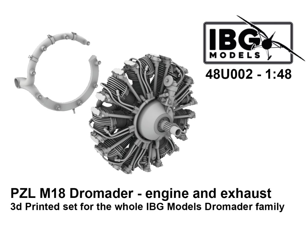 IBG 1/48 PZL M18 Dromader – Engine and Exhaust je 3D tištěný doplňkový set určený k výraznému vylepšení motoru a výfukového systému tohoto polského užitkového letounu. Doplněk nabízí jemné detaily a realistické tvary, které posouvají model PZL M18 Dromader na vyšší úroveň zpracování.