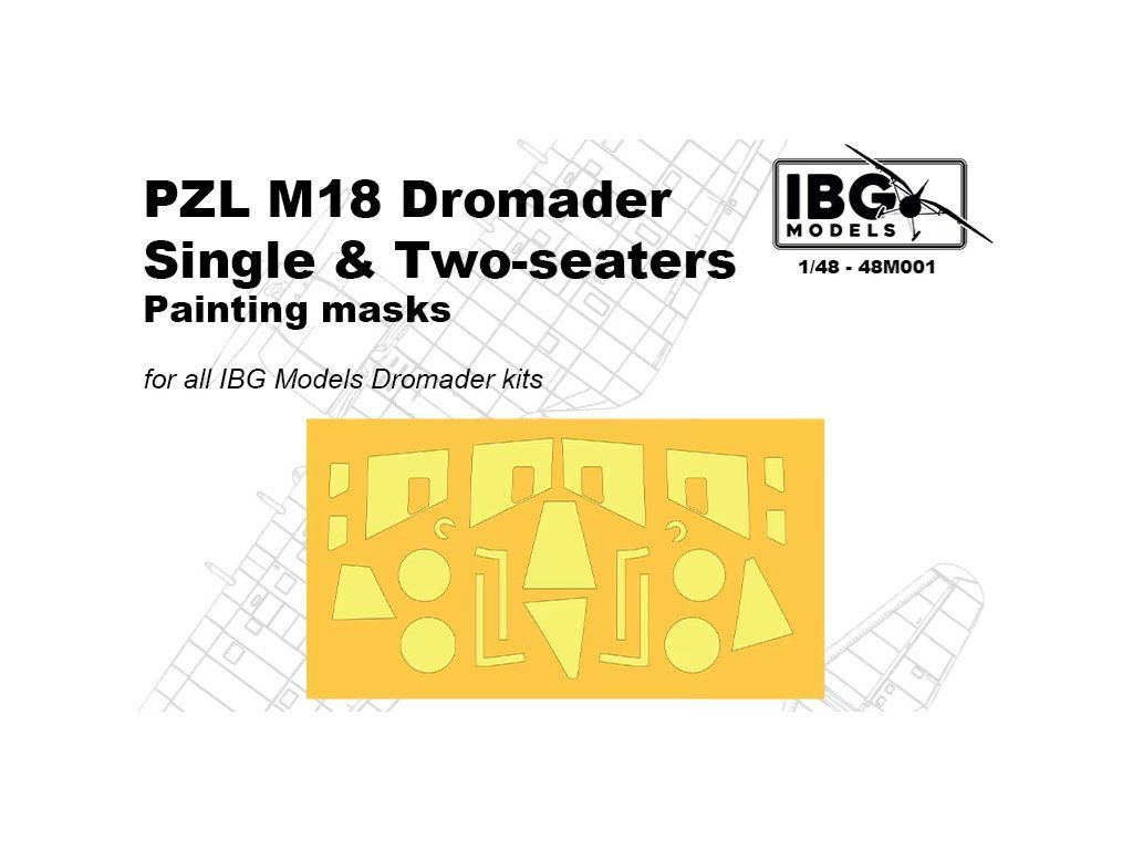 IBG 1/48 PZL M18 Dromader Painting Masks jsou masky určené pro usnadnění přesného lakování modelu tohoto polského užitkového letounu. Set umožňuje čisté oddělení jednotlivých ploch při barvení a výrazně zjednodušuje práci při dokončování modelu v měřítku 1/48.