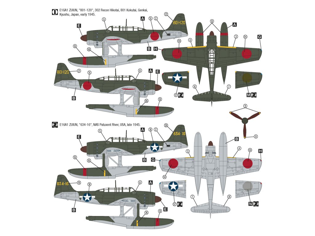 Aichi E16A Zuiun (kódové označení Spojenců „Paul") byl japonský palubní průzkumný hydroplán s pontonovou konstrukcí, navržený pro operace z bitevních lodí a křižníků. Vznikl v době, kdy japonské císařské námořnictvo potřebovalo moderní stroj schopný průzkumu, korekce dělostřelby i lehkých bombardovacích úkolů. Zuiun byl neobvyklý tím, že kombinoval relativně vysoký výkon s možností startu pomocí katapultu z válečných lodí, což umožňovalo rozšířit dosah průzkumu daleko za horizont mateřské lodi. V praxi se tyto stroje uplatnily zejména v druhé polovině války, kdy japonské námořnictvo čelilo rostoucí převaze Spojenců a potřebovalo efektivní prostředky pro sledování nepřátelských sil. Pro modeláře je Zuiun zajímavý svým charakteristickým vzhledem s plovákovou konstrukcí, čistými liniemi a typickým japonským barevným schématem.