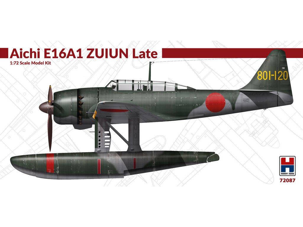 Hobby 2000 1/72 Aichi E16A1 Zuiun Late + Cartograf + Masks je plastikový model japonského palubního průzkumného hydroplánového letounu z období 2. světové války určený ke slepení. Stavebnice je doplněna o prémiové obtiskové nálepky Cartograf a maskovací sadu pro usnadnění lakování. Měřítko 1:72 nabízí dobrý poměr mezi detailností a velikostí modelu. Balení neobsahuje barvy ani lepidla potřebné k sestavení.