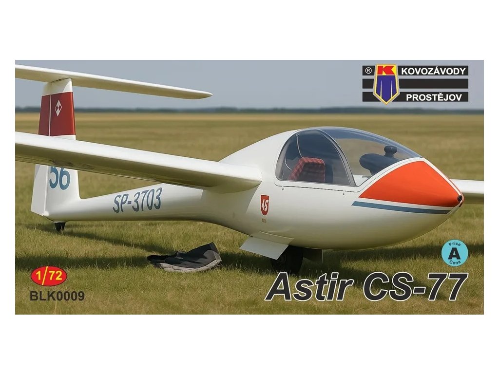 KPM 1/72 Astir CS-77 představuje plastovou stavebnici moderního jednomístného kluzáku v měřítku 1/72. Tento elegantní větroň, odvozený od typu Grob G 102, byl v 70. letech jedním z prvních celolaminátových kluzáků určených pro soutěžní a výcvikové létání. Stavebnice nabízí detailní zpracování trupu, křídel i kabiny a obsahuje obtisky pro civilní zbarvení.