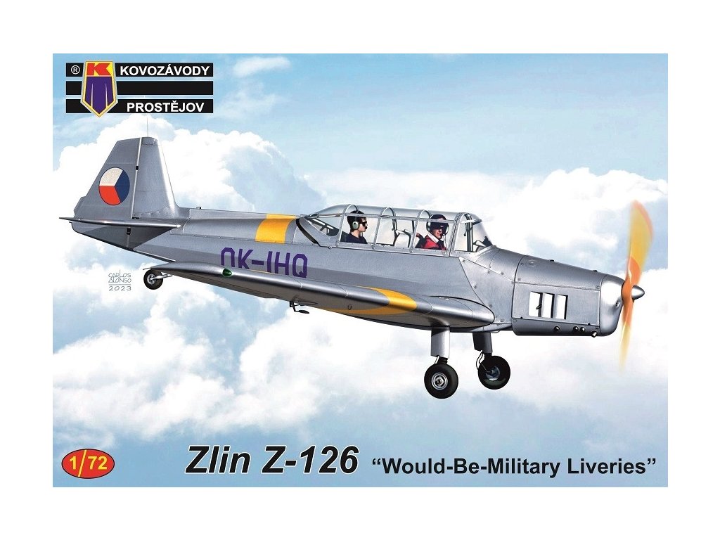 Model Zlín Z-126 "Would-Be-Military Liveries" v měřítku 1/72 od společnosti Kovozávody Prostějov (KPM) představuje československý cvičný letoun z 50. let 20. století, nabízený s hypotetickými vojenskými markingy. Sada obsahuje detailně zpracované plastové díly, realistický kokpit, jemné povrchové detaily a obtisky pro několik fiktivních vojenských verzí. Balení neobsahuje barvy ani lepidla potřebné k sestavení.