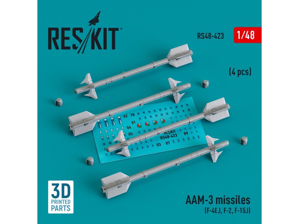 AAM-3 missiles (4 pcs) (F-4EJ, F-2, F-15J) (3D Printed) (1/48)