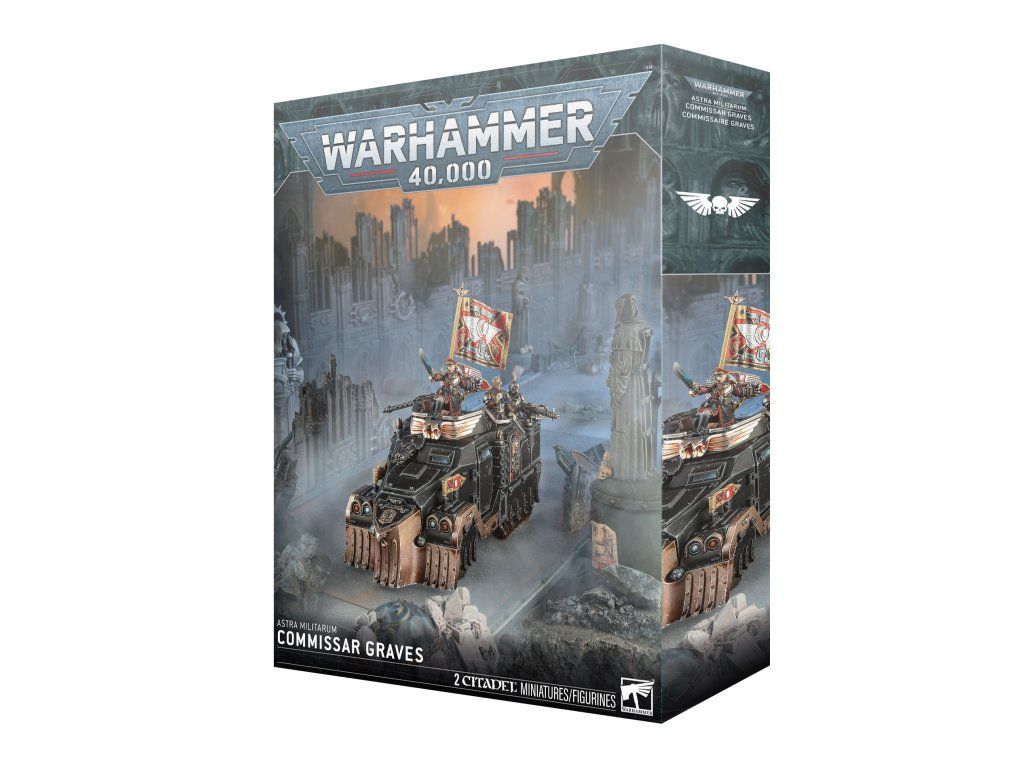 Warhammer 40,000: Astra Militarum: Commissar Graves je plastikový model komisaře Imperiální gardy určený ke slepení. Balení obsahuje 76 plastových komponentů, 32mm kulatou základnu, přenosový arch s 475 vodními nálepkami pro vozidla Astra Militarum a stavební návod. Model zobrazuje komisaře – obávaného důstojníka odpovědného za morálku a disciplínu jednotek Imperiální gardy. Vhodný pro hru Warhammer 40,000 i jako sběratelský kus pro malování. Balení neobsahuje barvy ani lepidlo potřebné k sestavení.