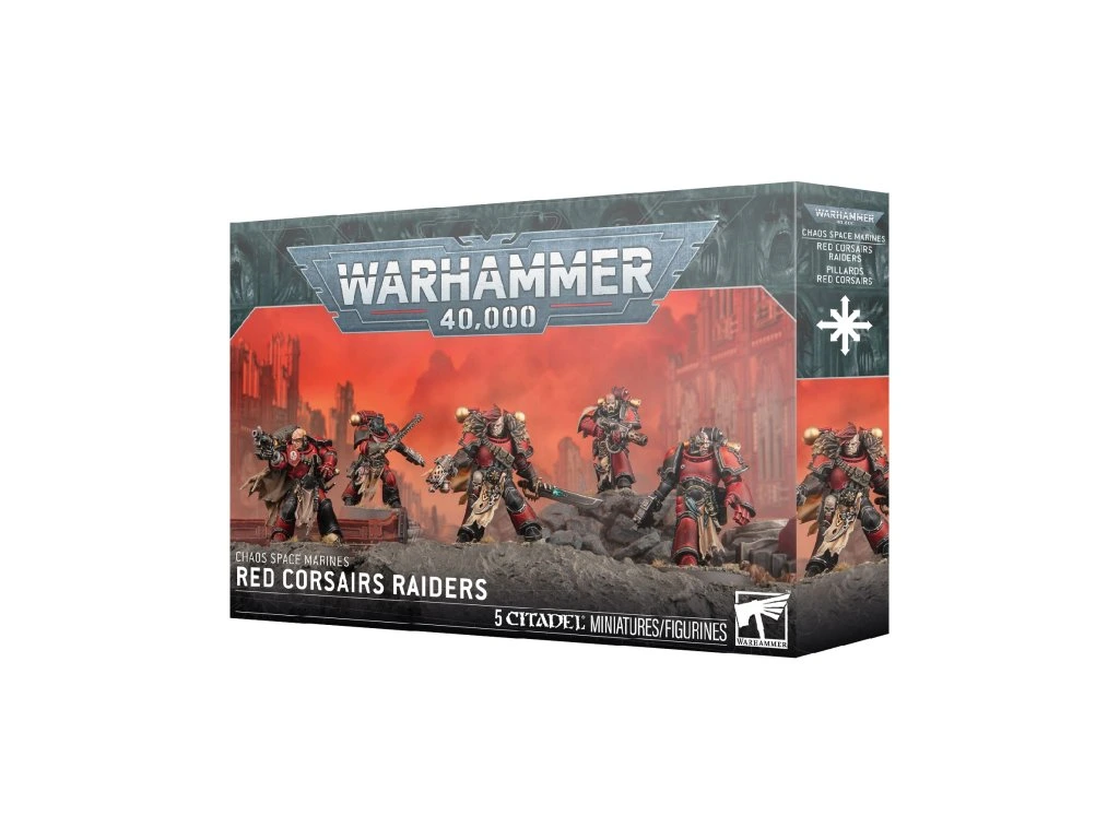 Warhammer 40,000: Chaos Space Marines: Red Corsairs Raiders je sada 5 plastových miniatur pirátských válečníků Chaosu z frakce Red Corsairs. Sada nabízí varianty výzbroje a možnost sestavit jednu figurku jako šampióna jednotky. Miniatury jsou určeny ke slepení a nabarvení. Balení neobsahuje barvy ani lepidlo potřebné k sestavení. Vhodné pro hru Warhammer 40,000 i jako malířský projekt.