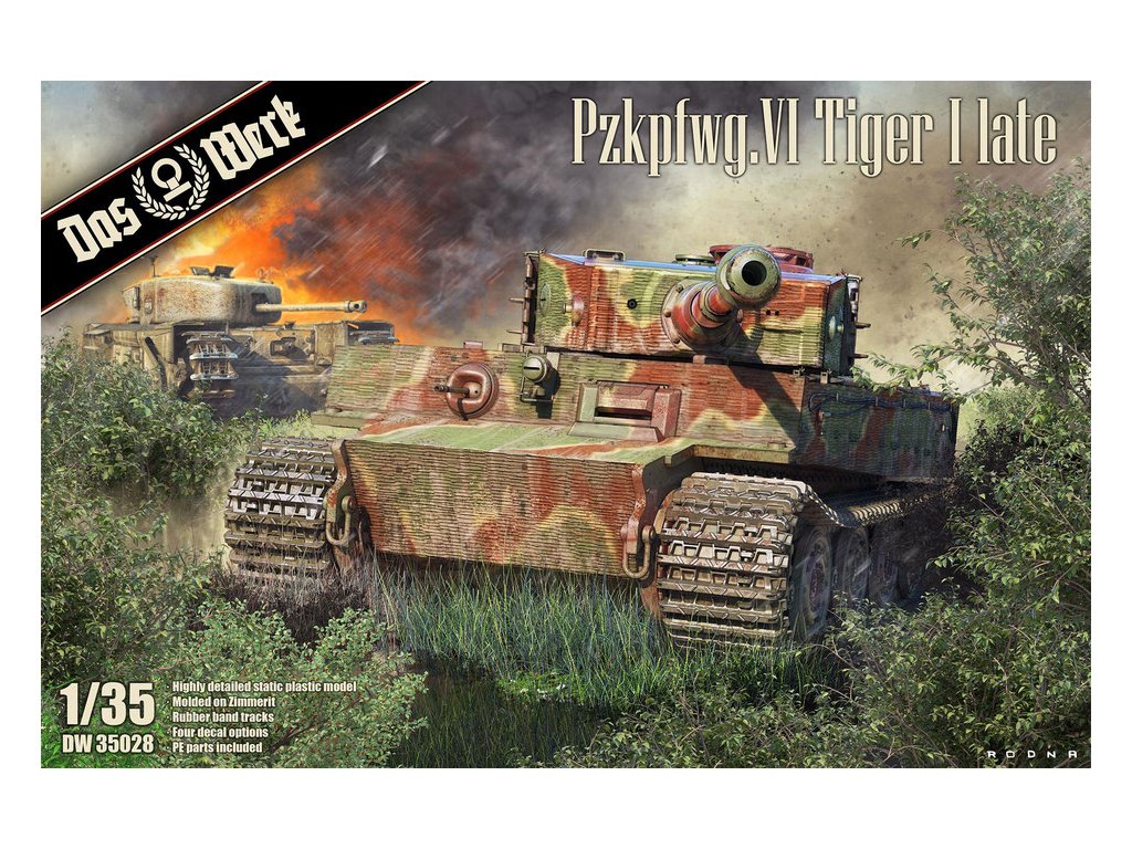 PzKpfw. VI Tiger I war einer der berühmtesten und angesehensten Panzer des Zweiten Weltkriegs. Die späte Version, die der Bausatz von Das Werk im Maßstab 1:35 abbildet, verfügt über eine verstärkte Panzerung, einen modifizierten Turm, eine Stahlfelge und andereStahlräder und andere Konstruktionsänderungen, die den Erfahrungen an der Front und den Produktionserfordernissen in den letzten Kriegsjahren Rechnung trugen.