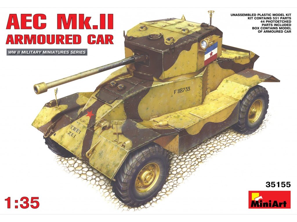 Der MiniArt 1/35 AEC Mk 2 Armoured Car ist ein hochdetaillierter Bausatz mit einem vollständig detaillierten Innenraum, einschließlich Fahrerkabine, Kampfraum und Motor. Es gibt auch kleine Details von Ausrüstung, Werkzeugen, Munition und optischen Instrumenten. Das Modell eignet sich als Einzelstück oder als Teil von Dioramen aus dem Italienfeldzug, Nordafrika oder den Kämpfen nach der Landung in der Normandie.