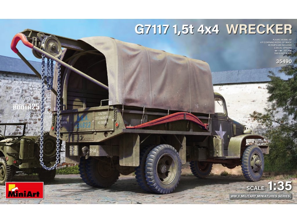 Das G7117 1.5T 4x4-Zugfahrzeug war eines der wichtigsten Unterstützungsfahrzeuge der US-Armee im Zweiten Weltkrieg. Das Fahrzeug wurde eingesetzt, um beschädigte Ausrüstung, insbesondere leichte und mittelschwere Lastwagen und Jeeps, von der Kampflinie nach hinten zu evakuieren. Es war robust, zuverlässig und mit einer leistungsstarken Winde ausgestattet, was es zu einem unverzichtbaren Hilfsmittel unter logistischen und kämpferischen Bedingungen machte. Er wurde an allen wichtigen Fronten eingesetzt, auch in Europa und im Pazifik.