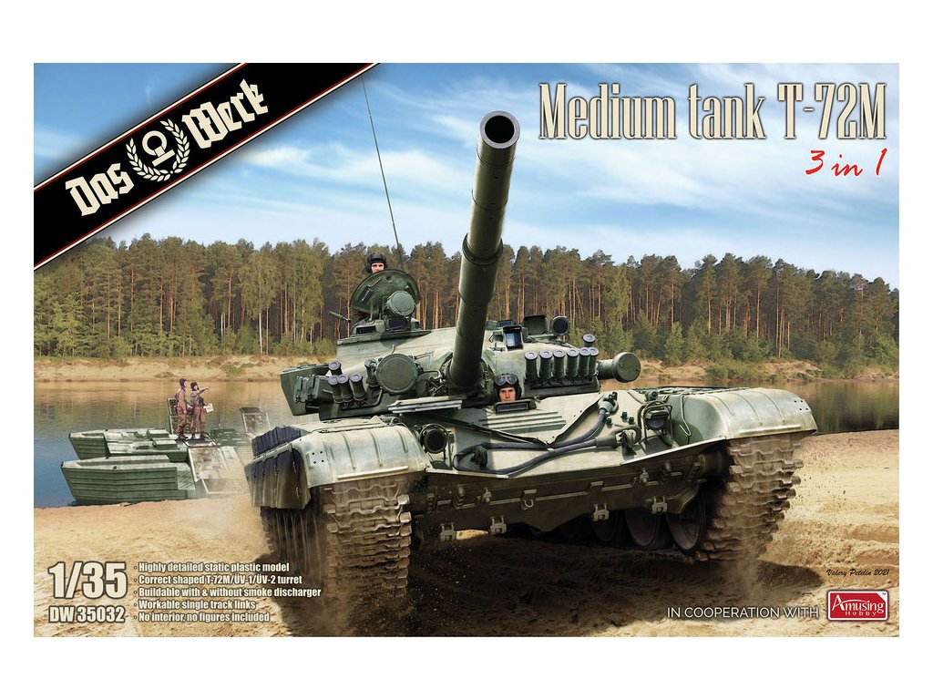 Das Werk 1/35 Medium Tank T-72M ist ein Plastikmodell der sowjetischen mittleren Panzerversion T-72M, die in den Armeen der DDR, Ungarns, der Tschechoslowakei und des Irak diente. Das Paket enthält keine Farbe oder Klebstoff für die Montage benötigt.