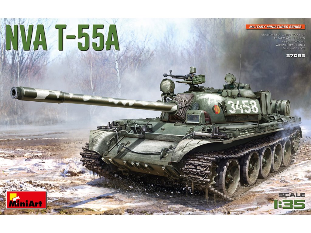 Das Modell des NVA T-55A im Maßstab 1:35 von MiniArt ist eine Version des sowjetischen mittleren Panzers T-55A in der Bewaffnung der Nationalen Volksarmee (NVA) der ehemaligen Deutschen Demokratischen Republik. Der Bausatz enthält detaillierte Kunststoffteile, eine komplette Innenausstattung und Details aus der Zeit. Das Paket enthält keine Farbe oder Klebstoff für die Montage benötigt.
