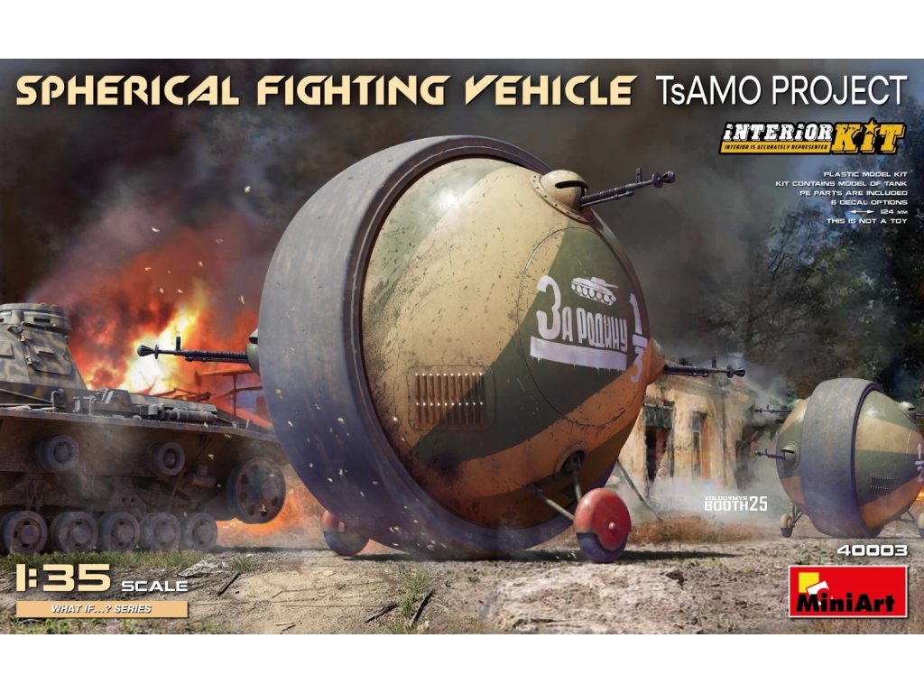 Das Spherical Fighting Vehicle im Maßstab 1:35 ist eine kühne und unkonventionelle Interpretation der sowjetischen Kampfmaschine aus dem TsAMO-Archivprojekt, die in einer alternativen Welt spielt. Mit kompletter Innenausstattung, Fotoätzteilen und fünf verschiedenen Markierungen wird dieser Bausatz Sci-Fi-Fans und Modellbauer begeistern, die "Was wäre wenn"-Szenarien lieben. Die Verpackung enthält keine Farbe oder Klebstoff für die Montage benötigt.