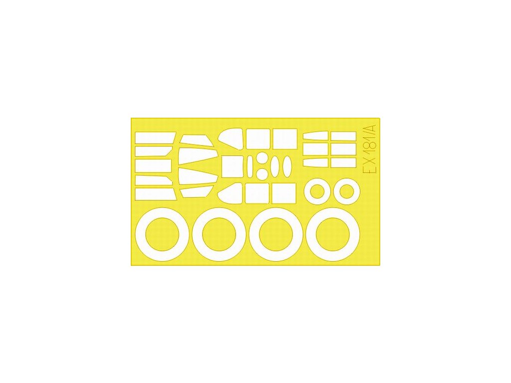 Einseitig selbstklebende Maske für Klarsichtteile und Fahrwerksräder für den Bausatz Curtiss Tomahawk Mk.II von Airfix im Maßstab 1/48....