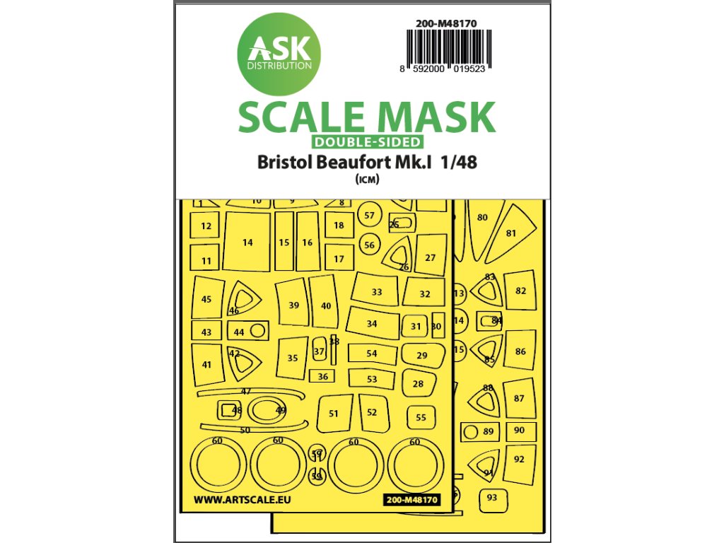 Art Scale Kit Distribution (ASK) stellt vorgestanzte und nummerierte Abdeckbögen für Plastikmodelle her. Die Masken sind in erster Linie für das Abkleben von Kabinen und Rädern gedacht, erleichtern aber auch das Abkleben anderer Teile des Modells. Jedes Kit wird für einen bestimmten Modellbausatz im entsprechenden Maßstab empfohlen, um maximale Genauigkeit und Benutzerfreundlichkeit zu gewährleisten.
