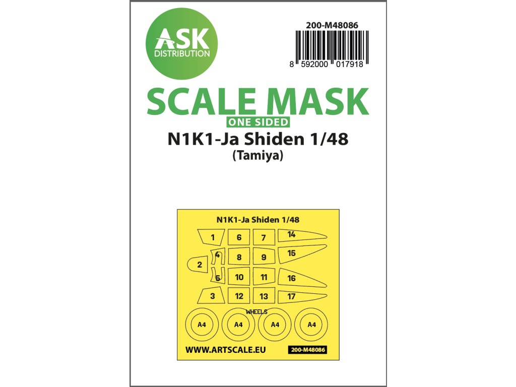 1/48 N1K1-Ja Shiden einseitig selbstklebende Maske von Klarsichtteilen und Radmasken für Tamiya Bausatz, Katalognummer 200-M48086. Vorgeschnittene Kabuki-Maskierfolie von höchster Qualität, die beste technologische Herstellung des Folienquerschnitts. Alle Maskenteile sind mit Nummern bedruckt, die zusammen mit der Anleitung die genaue Position, Doseund Anwendung auf dem maskierten Modell - eine große Arbeitserleichterung, die zu einem perfekten Modell führt.