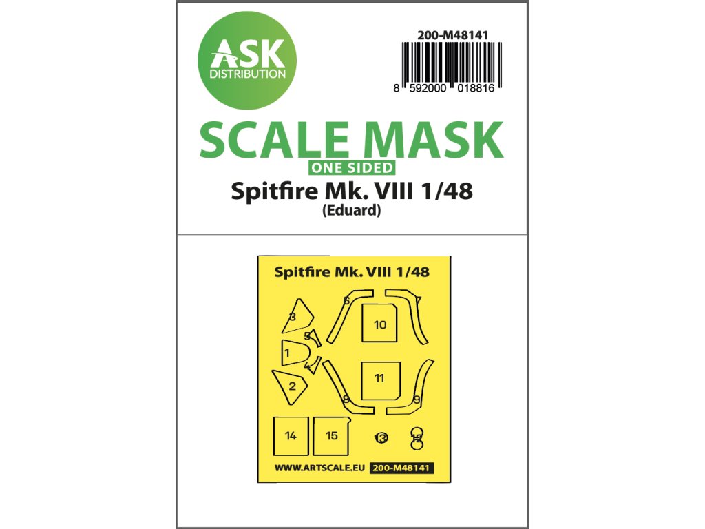 1/48 Spitfire Mk.VIII einseitig selbstklebende Passformmaske aus Klarsichtteilen für Eduard Bausatz. Katalognummer 200-M48141. Vorgeschnittene Kabuki-Maskenfolie von höchster Qualität, die beste technologische Herstellung des Folienquerschnitts. Alle Maskenteile sind mit Nummern bedruckt, die zusammen mit der Anleitung die genaue Position, Doseund Anwendung auf dem maskierten Modell - eine große Arbeitserleichterung, die zu einem perfekten Modell führt.