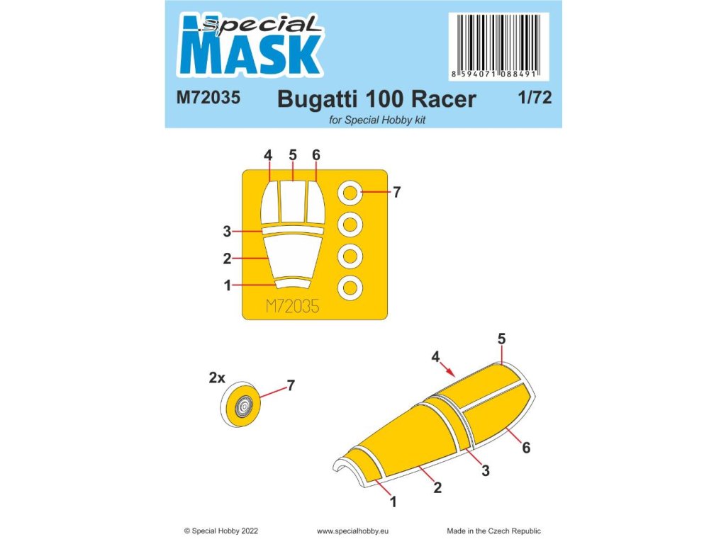 Dieser Satz Tarnschablonen für den Bugatti 100 im Maßstab 1:72 von Special Hobby ermöglicht es Ihnen, das Cockpit und andere transparente Teile des Modells während der Lackierung präzise abzudecken. Die Schablonen entsprechen genau den Formen des Glases, was das Auftragen von Farbe erleichtert und für scharfe Lackierlinien sorgt. Sie sind aus hochwertigem Material hergestellt, das sich leicht auftragen und entfernen lässt. Die Packung enthält keine Farbe oder Klebstoffe, die für den Zusammenbau benötigt werden.