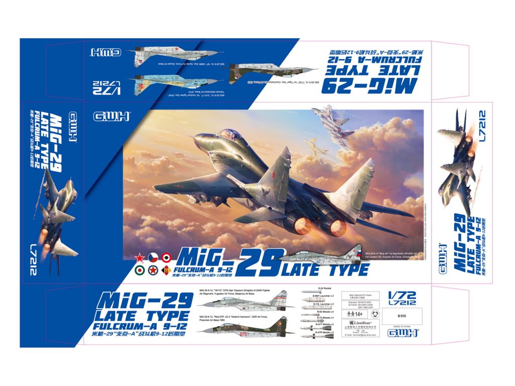 Das Modell der MiG-29 Late Type 9-12 "Fulcrum-A" im Maßstab 1:72 von Great Wall Hobby bietet eine detailgetreue modernisierte Version eines der wichtigsten sowjetischen Kampfflugzeuge des Kalten Krieges. Die MiG-29 9-12, die in den 1980er Jahren in Dienst gestellt wurde , wurde als Antwort auf die amerikanischen F-15- und F-16-Kampfflugzeuge entwickelt, wobei der Schwerpunkt auf überlegener Manövrierfähigkeit, Geschwindigkeit und effektivem Nah- und Mittelstreckeneinsatz lag.