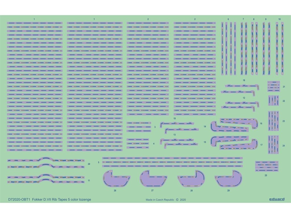 Fokker D.VII rib tapes 5color lozenge 1/72 recommended for EDUARD