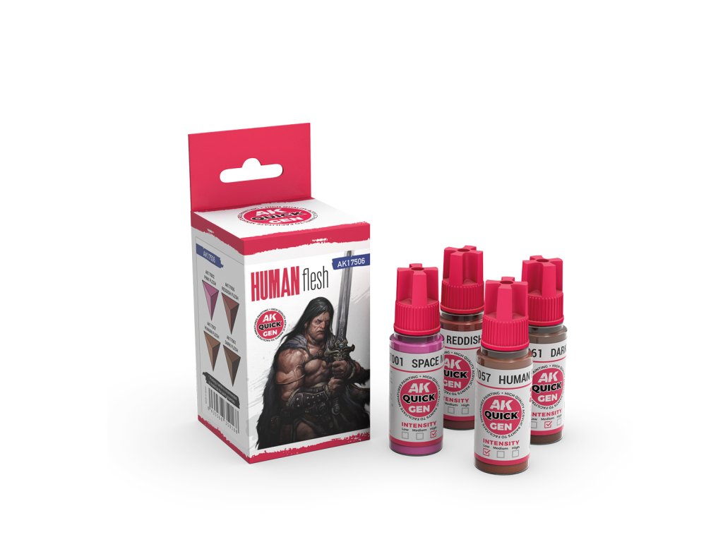 Das QUICK GEN Flesh Set wurde speziell für Figurenmaler und Modellbauer entwickelt, die schnell und effizient realistische Hautbemalungsergebnisse erzielen wollen. Es enthält eine Reihe von Farbtönen, die ein breites Spektrum abdecken - von subtilen hellen Tönen über natürliche bis hin zu dunkleren gebräunten Varianten. Dank spezieller Pigmente fließen die Farben spontan in die Details und verstärken Tiefe und natürliche Farbverläufe in nur einer Schicht.