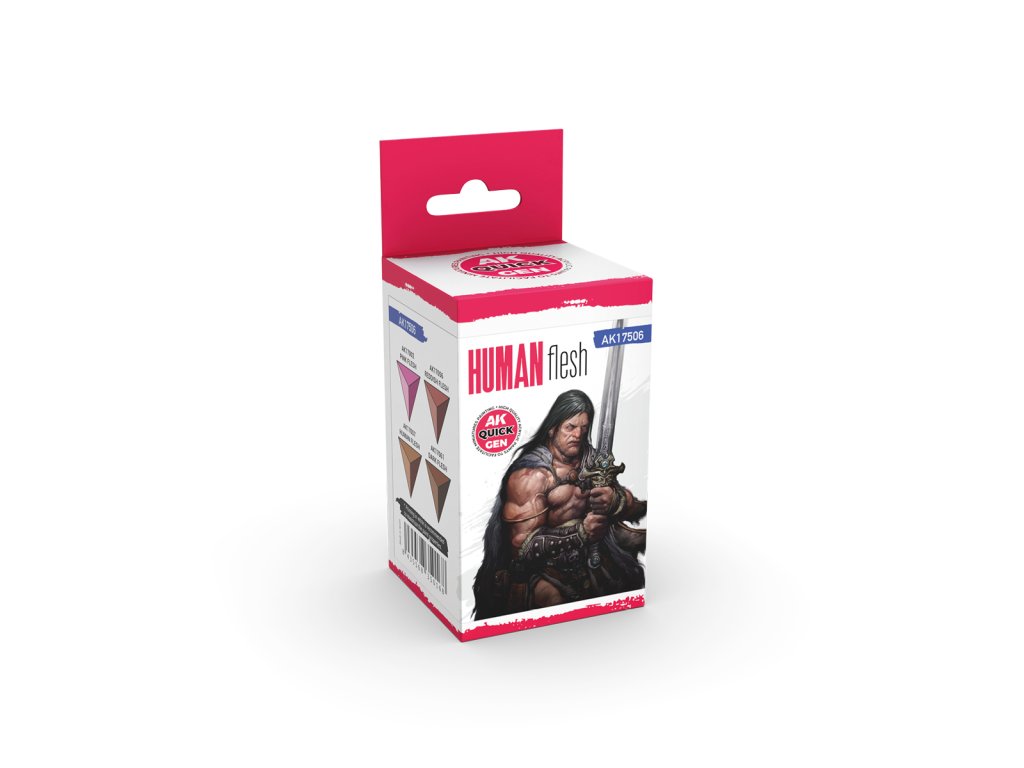 Das QUICK GEN Flesh Set bietet eine Auswahl an Farbtönen für eine realistische Darstellung der menschlichen Haut - von hellen Tönen bis hin zu gebräunter Haut. Die Farben erzeugen ein natürliches Aussehen in nur einer Schicht.