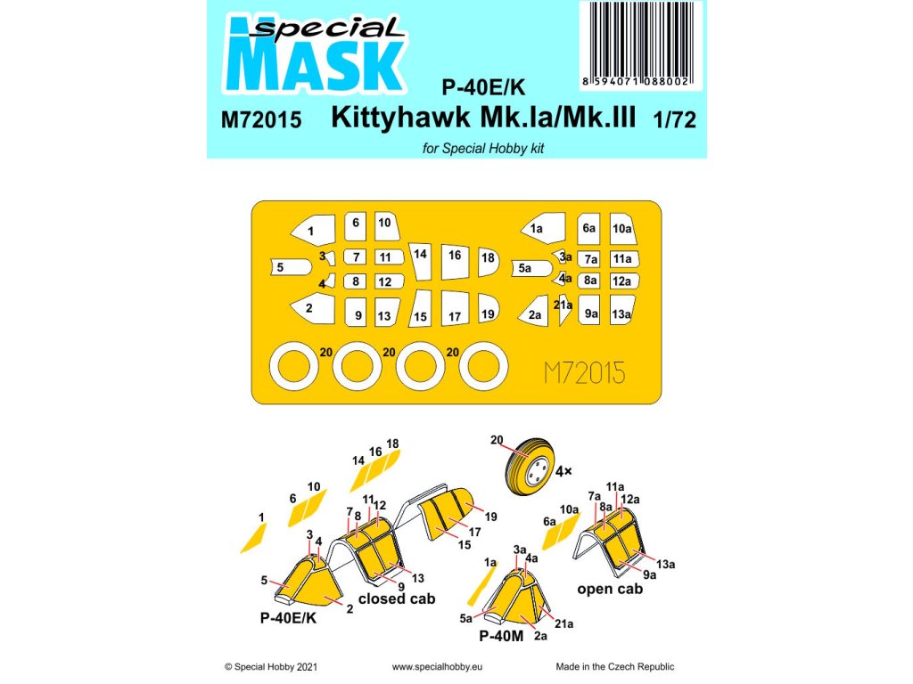 Maska pro plastikový model 1/72 P-40E/K/Kittyhawk Mk.Ia/Mk.III