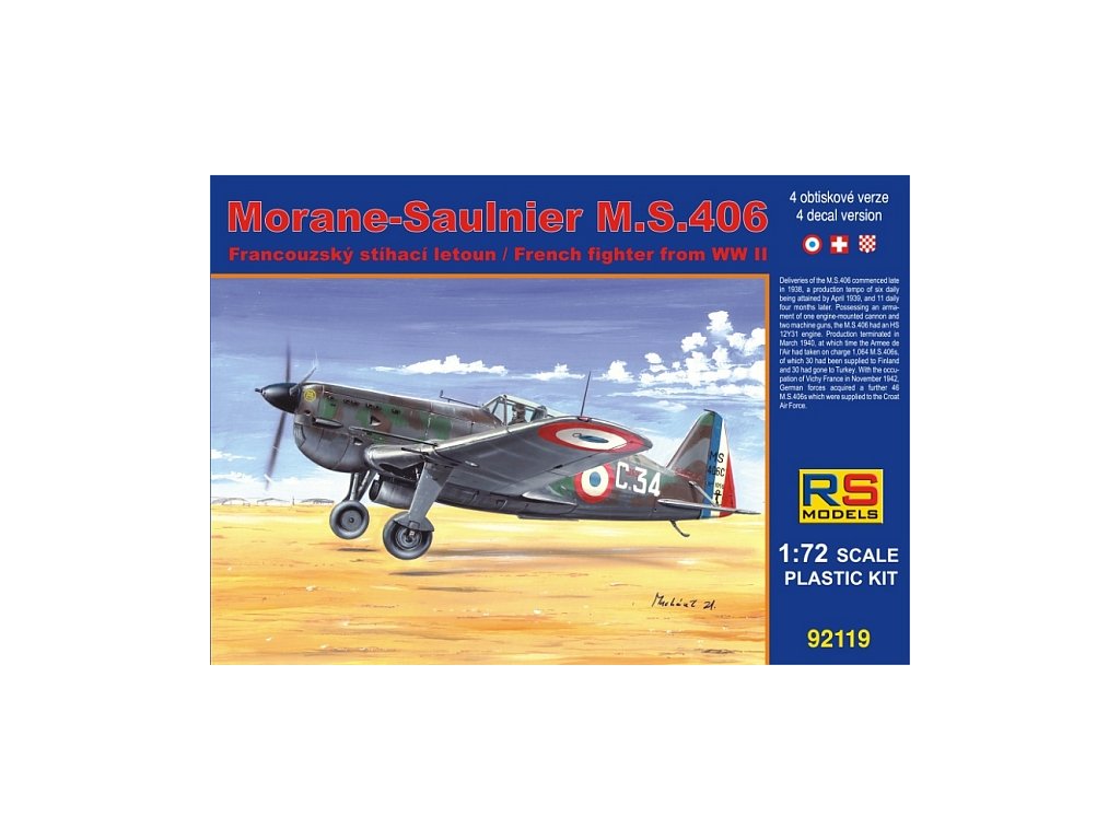 Plastikový model letadla 1/72 Morane Saulnier MS.406 France 4 decal v. for France, Switzerland, Cro