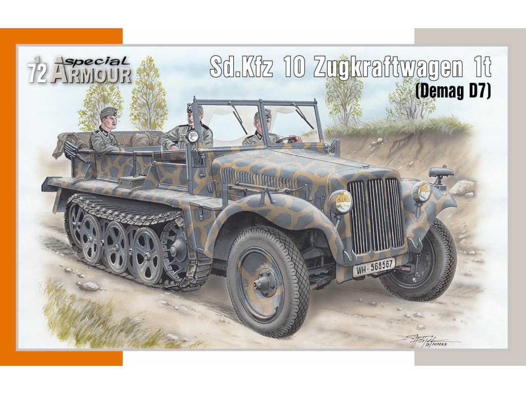 Das Sd.Kfz. 10 Zugkraftwagen 1t (Demag D7) im Maßstab 1/72 von Special Hobby stellt einen der am weitesten verbreiteten leichten Sattelzugmaschinen des deutschen Heeres im Zweiten Weltkrieg dar. Das Sd.Kfz. 10 war als Mehrzwecktransporter mit einer Anhängelast von einer Tonne konzipiert und wurde zum Schleppen von leichter Artillerie wie FlaK 30 oder PaK 36 Panzerabwehrkanonen eingesetzt.