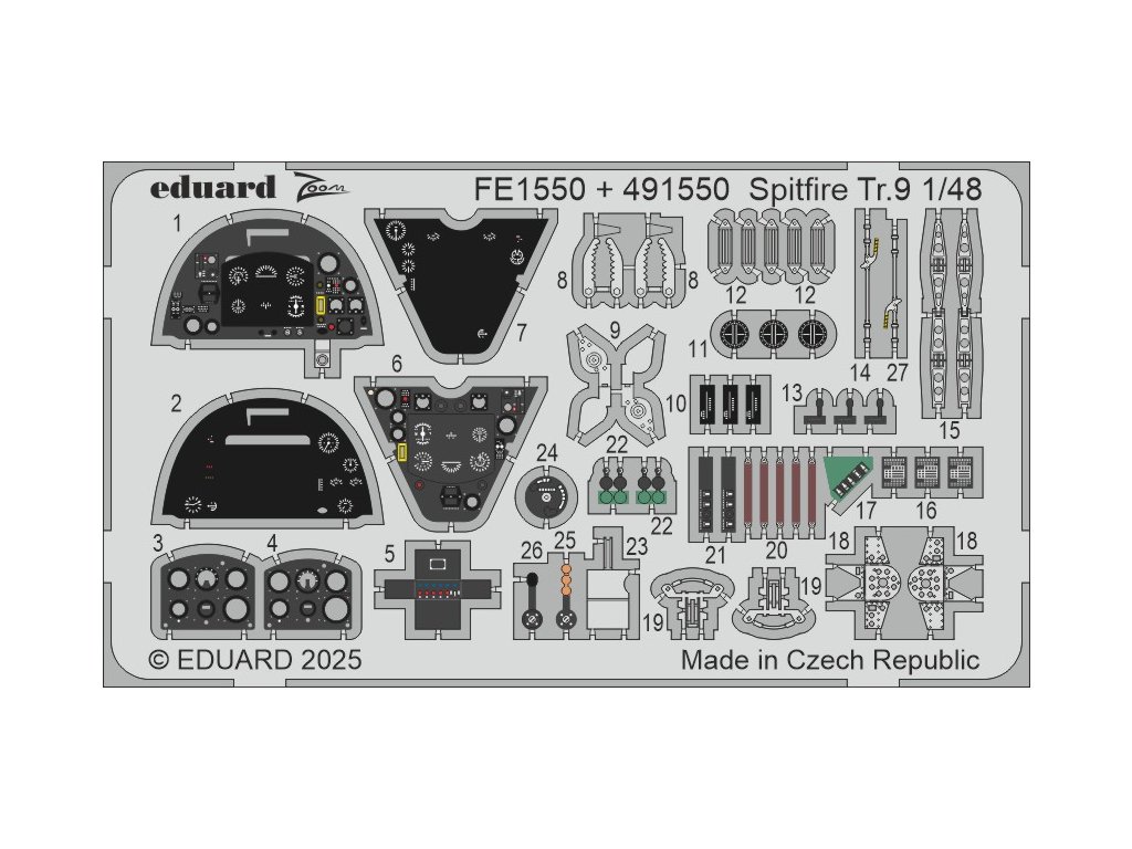 1/48 Spitfire Tr.9 einseitig selbstklebende Passformmaske aus Klarsichtteilen und Radmasken für Eduard Bausatz. Katalognummer 200-M48321