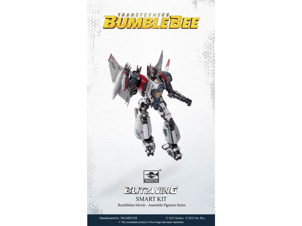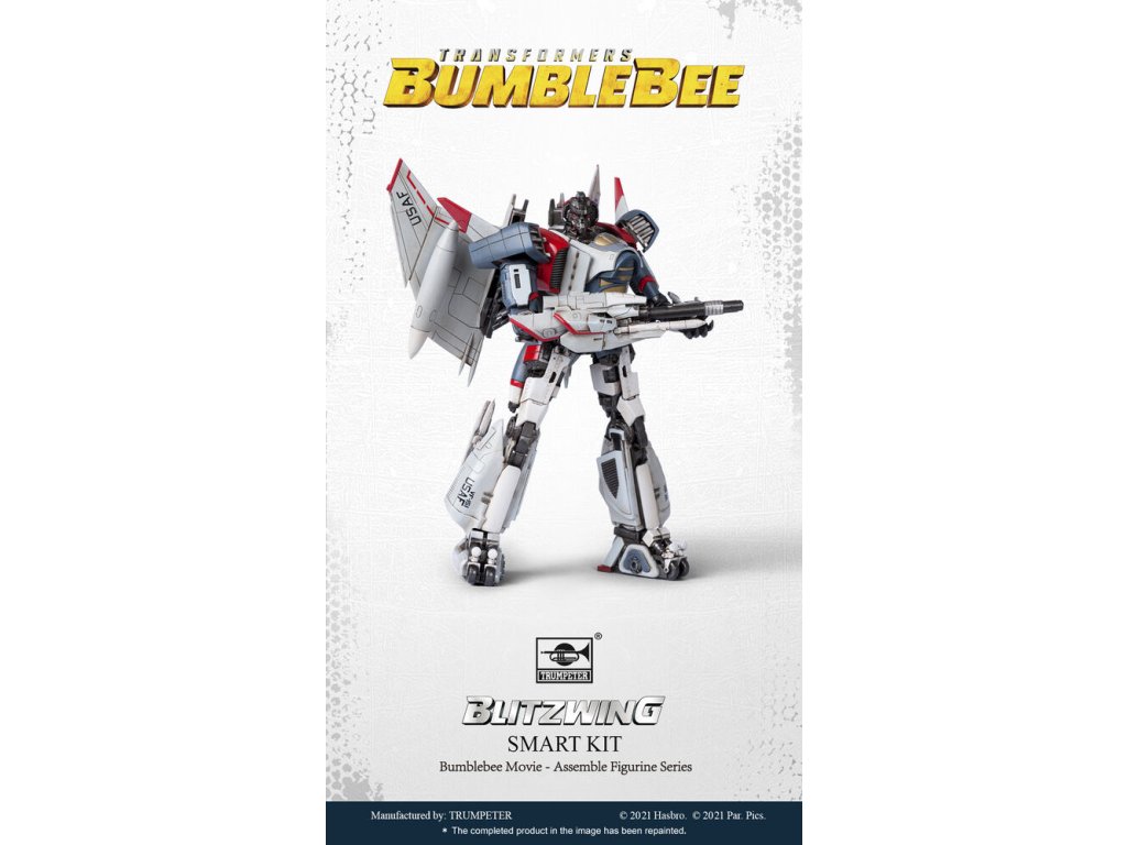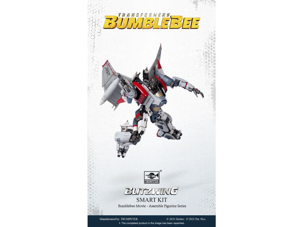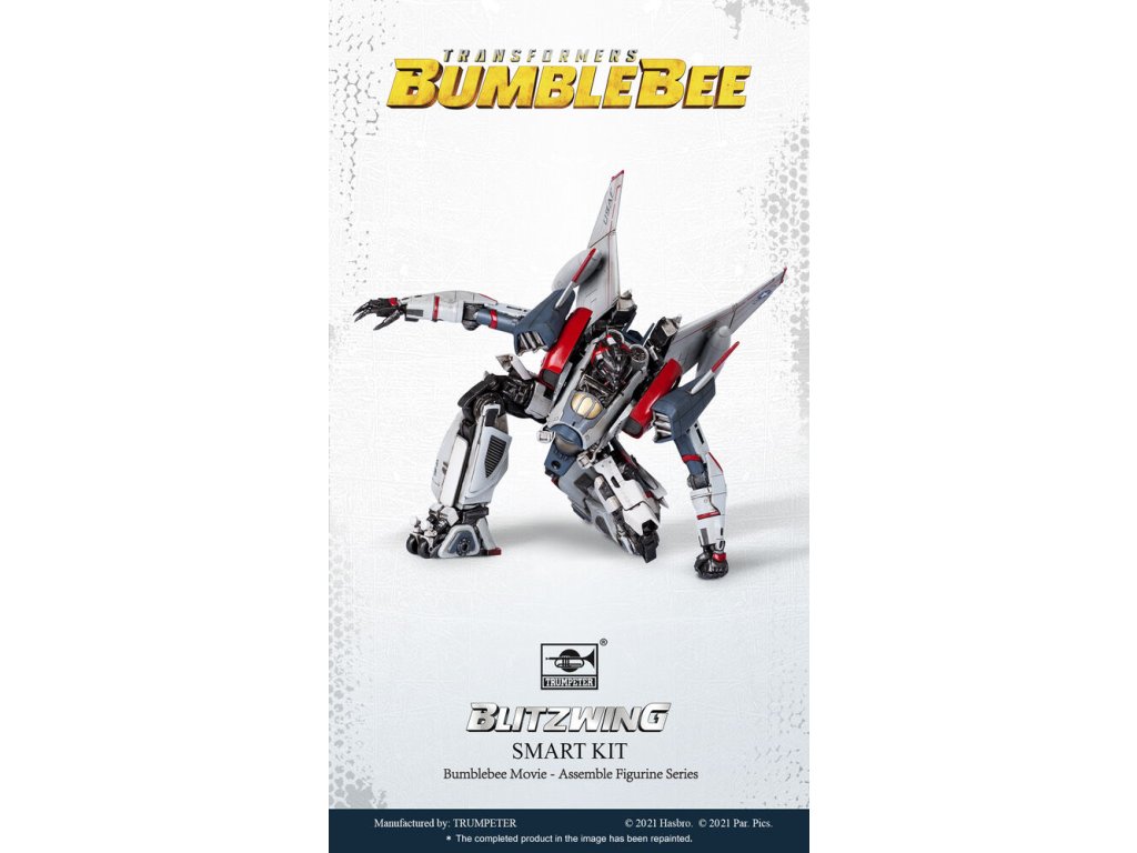 Authentisches Plastikmodell von Blitzwing aus Transformers 6 von Trumpeter. Einfacher Bausatz zum Einrasten mit vorlackierten Teilen. Geeignet für Anfänger und jüngere Modellbauer.