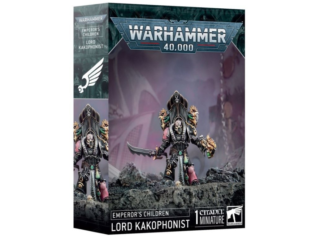 Warhammer 40,000: Emperor's Children - Lord Kakophonist je plastikový model velitele Chaos Space Marines z frakce Emperor's Children určený ke slepení a vymalování. Postava představuje elitního válečníka oddaného Slaaneshi, bohu přebytku a smyslových excesů, vyzbrojeného sonickými zbraněmi schopnými ničit nepřátele zvukovými vlnami. Model je vhodný pro hráče armády Chaos Space Marines i sběratele miniatur z univerza Warhammer 40,000. Balení neobsahuje barvy ani lepidla potřebné k sestavení.