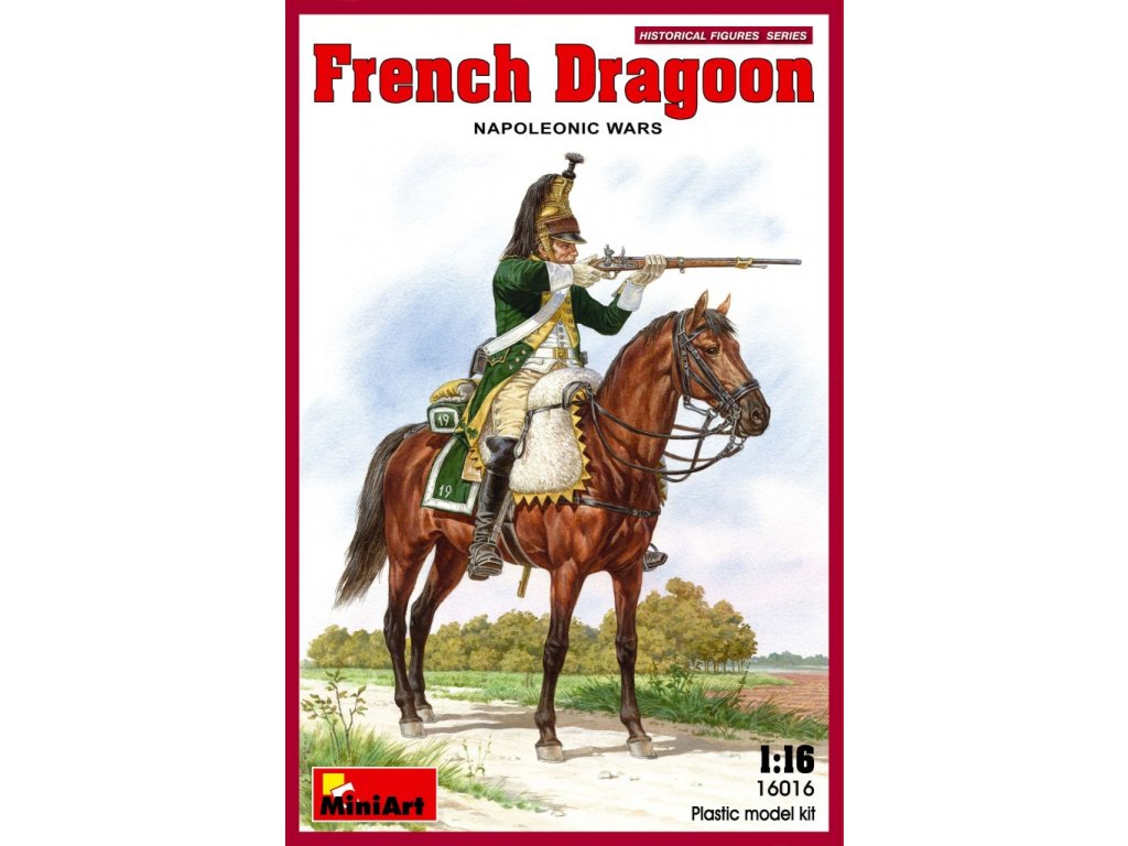 MiniArt 1/16 French Dragoon. Napoleonic Wars brings an impressive figure of a French cavalry soldier from the Napoleonic Wars, a period of intense European conflict from 1803-1815. Dragoons formed an important part of Napoleon's army - their ability to fight on foot and on horseback made them versatile units suitable for various types of combat.