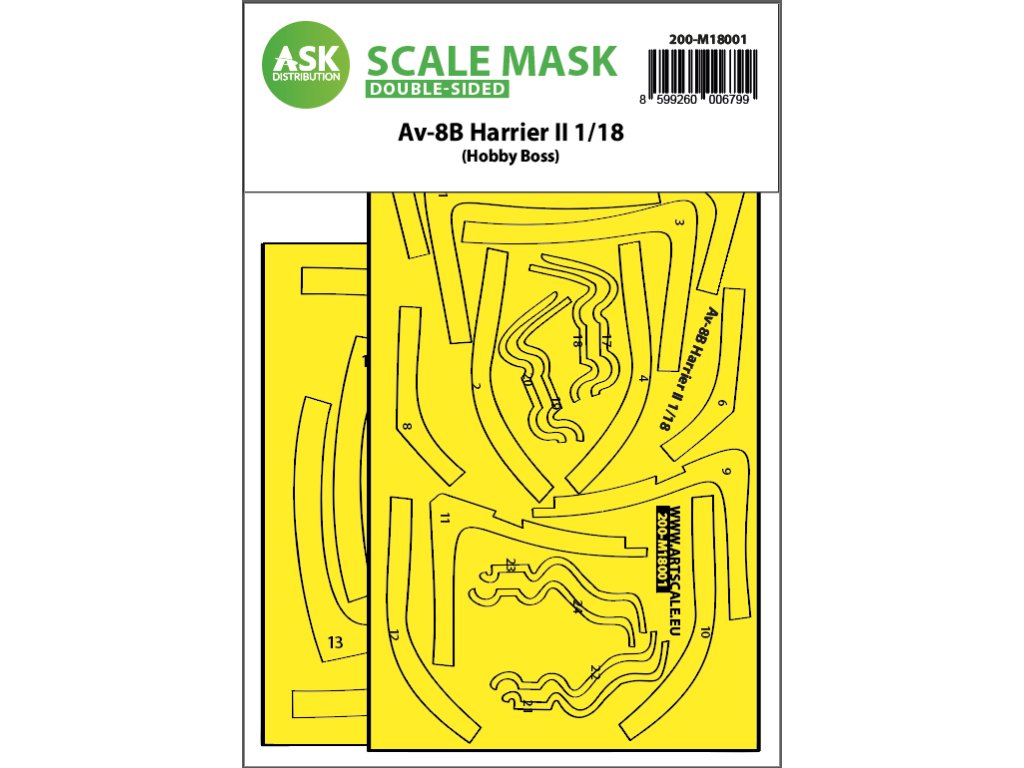 1/18 Av-8B Harrier II double-sided self-adhesive fit mask for Hobby Boss kit. Catalog number: 200-M18001