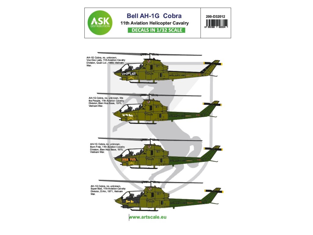 1/32 Bell AH-1G Cobra 11th Aviation Helicopter Cavalry. Decal shett. Contain decals for 4 markings.