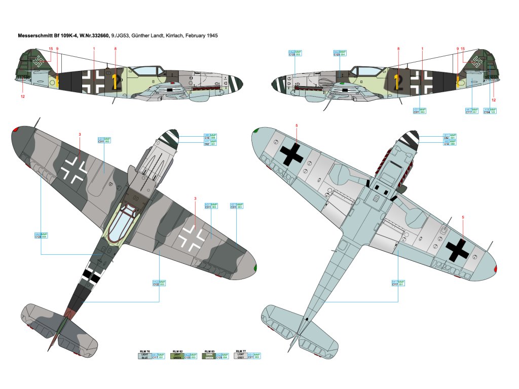 -Messerschmitt Bf 109K-4, W.Nr.332660, 9./JG53, Gúnther Landt, Kirrlach, February 1945