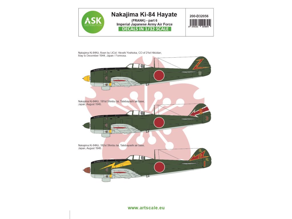 1/32 Nakajima Ki-84 Hayate (Frank) part 4 - Imperial Japanese Army Air Force, ASK no. 200-D32054 Decal sheet contain follow markings: -...