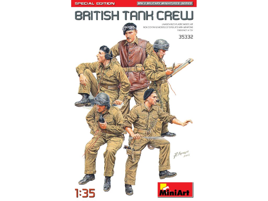 MiniArt's British Tank Crew - Special Edition 1/35th scale set features detailed figures of British tank units deployed during World War II. The figures are rendered in a variety of poses suitable for combat and recreational situations, with emphasis on natural stance and realistic detail.